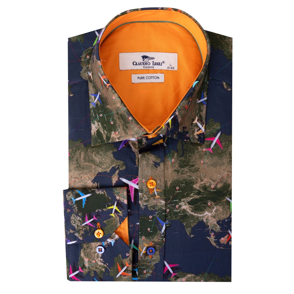 Claudio Lugli Flight Map Shirt in Navy brings a striking new look to the latest smart-casualwear collection from Claudio Lugli for the season ahead, perfect for an eye-catching appearance. Constructed with a spread collar in an allover "Flight Map" print.
