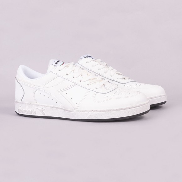 diadora Magic Basket Icon Trainer in White reintroduces an iconic diadora style from the brand's 1985 basketball collection for the coming season, retaining a comfortable design that's ideal for activewear. Constructed in a low-top, lace-up design and featuring embossed branding to the sole also aged and distressed to the sides of the sole.