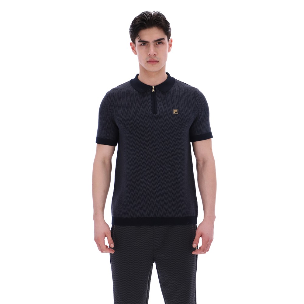 Fila Mens Black Marty 1/2 Zip Polo