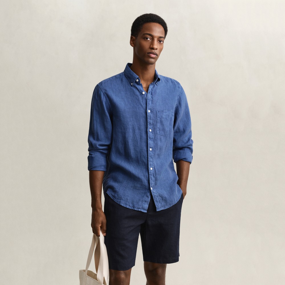Gant Mens Blue Garment Dyed Linen Shirt