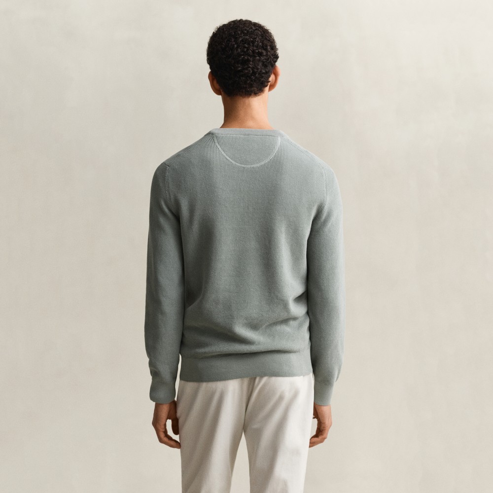 Gant Mens Green Micro Textured Cotton Crewneck Jumper