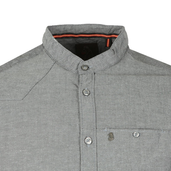 Luke Baseline Grandad Collar Shirt in Black. A stylish shirt with long sleeves and a grandad collar. The shirt is simplistic with a small button closure for the chest pocket and a Luke Lion badge to finish.