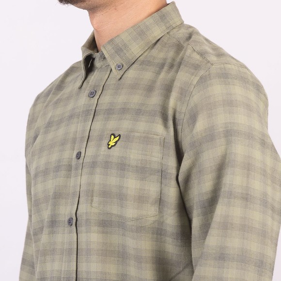 Lyle & Scott Button Down Check Shirt in Seaweed brings a simple, classic look to a soft and comfortable flannel shirt for the new season with a button-down collar for a smarter appearance. Featuring embroidered branding atop the chest pocket at the left side.