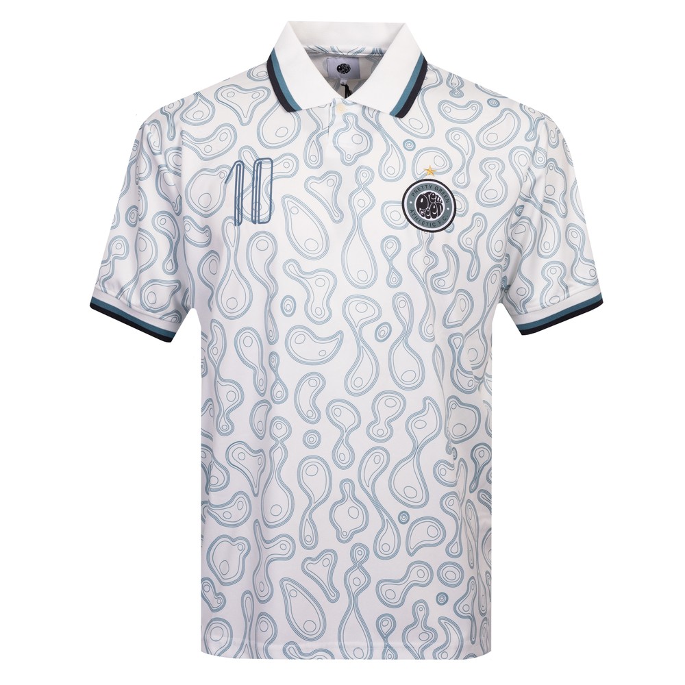 Pretty Green Outro Football Top Polo Shirt in White celebrates the World Cup year with Pretty Green's take on a classic football shirt, perfect for casualwear occasions over the new season. Constructed with a single-buttoning placket in an allover paisley print and featuring embroidered branding to the left side of the chest.
