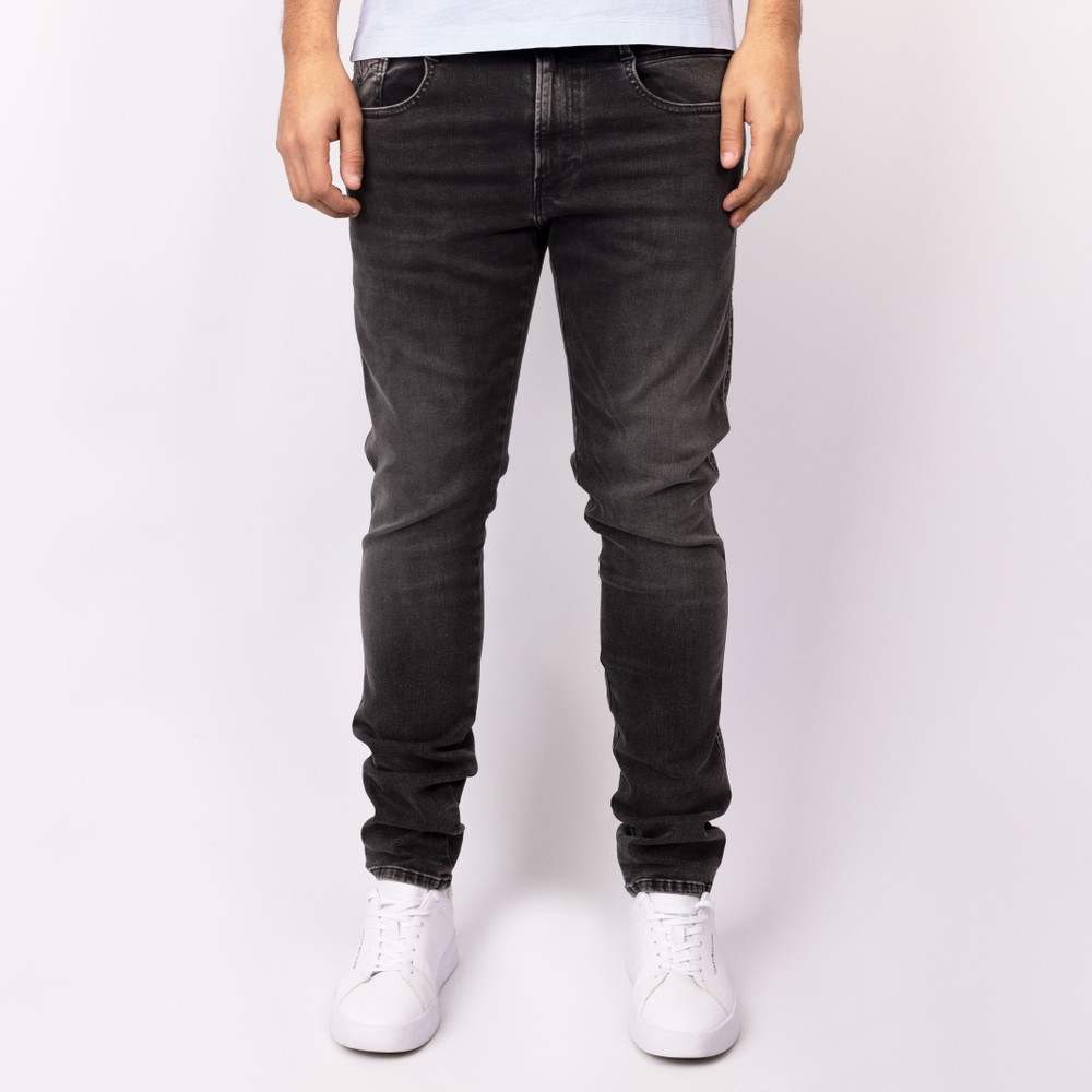 Replay Hyperflex Anbass Stretch Jean in Washed Black. Cut in a classic Anbass slim fit but now with added Hyperflex material these jeans offer the perfect fit. The slim look keeps in with trend whilst the stretch from the Hyperflex gives moveability and comfort, Given five pockets with the back ones have Replay's embroidered gull design.