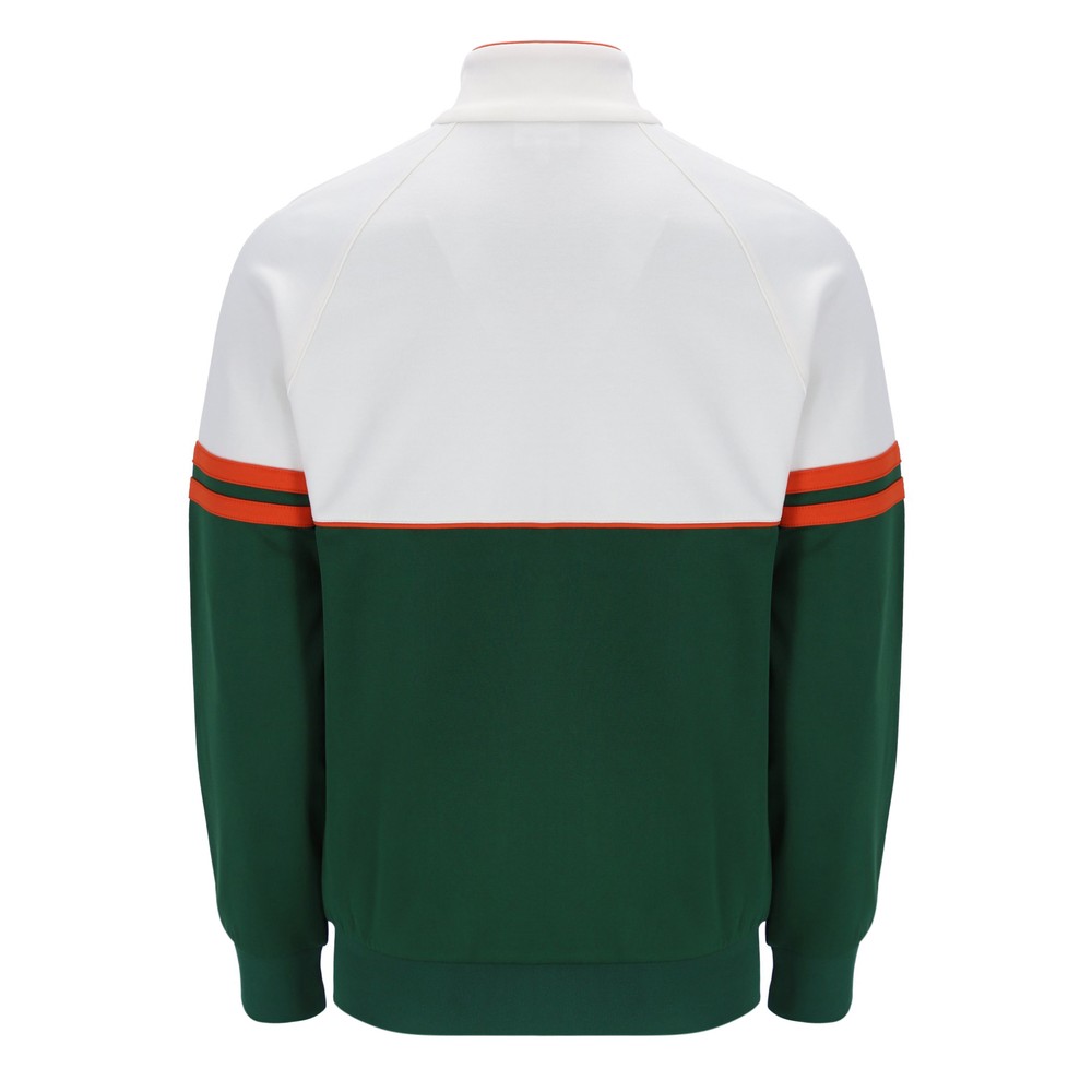 The Orion Track Top in Gardenia and Tangerine Tango from Sergio Tacchini is a classic track top with a stand collar and full zip closure. A Sergio Tacchini logo is embroidered on the chest with a contrast tipped detail running across. Double-stripes are added on to the sleeves.