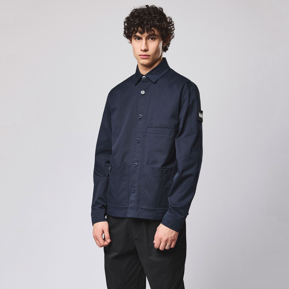Weekend Offender Jerada Relaxed Cotton Overshirt in Navy brings a rugged, utility-focused look to the latest outerwear collection from Weekend Offender for the new season. Constructed with full-button fastening and featuring two buttoning side pockets with a metal logo badge to the upper left sleeve.