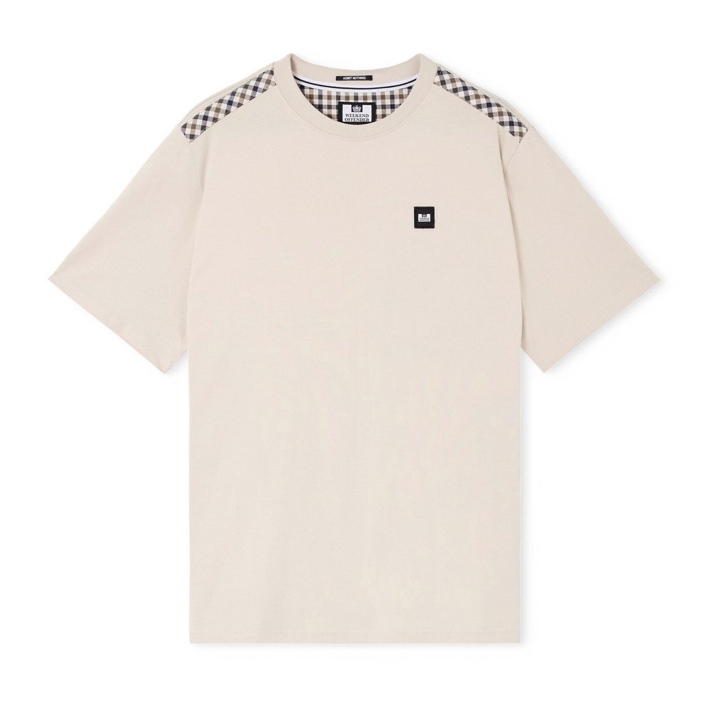 Weekend Offender Medea Shoulder Detail T-Shirt in Cement refreshes a signature look from Weekend Offender for the new season, perfect for relaxed occasions in the warmer weather ahead. Cut to a crew neck with short sleeves and featuring check detailing to the shoulders with embroidered branding to the left side of the chest.