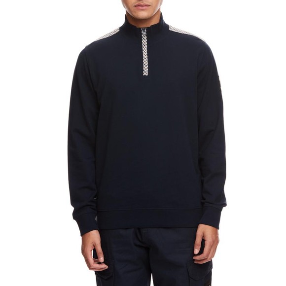 Weekend Offender Miyako Half Zip Sweatshirt in Navy makes a more subtle addition to the range of smart-casualwear from Weekend Offender for the new season ahead and is ideal for slightly cooler occasions. Constructed with half-zip closure and a funnel neck and featuring checked shoulder panels with a metal logo badge to the upper left arm.